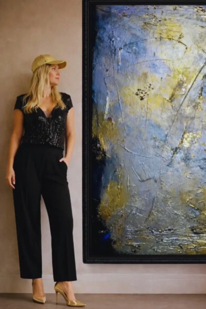 A densidade desse mergulho nasce de um processo epifânico: um sonho profético que a fez abandonar a Economia para abraçar a arte. Martina reconhece o azul não apenas por sua psicologia de apaziguamento, mas como um canal de transcendência. “A mensagem do azul é muito maior do que nós”, ela afirma. A artista, que despontou no sul da Alemanha e ganhou relevância internacional, destaca que a frequência dessa cor ressoa com o corpo e a mente, alinhando o espírito. Ao nos lembrar de que Deus “nos deu todas as cores com um significado”, sua pintura transmuta-se em ato litúrgico: cada pincelada é uma oração não dita; cada veladura, um testemunho de fé.